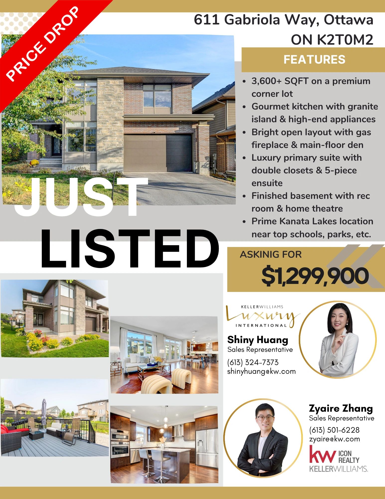 Stunning 3,600+ SQFT Kanata Lakes home on a premium corner lot with 4 beds, 4 baths, den, open layout, gas fireplace, chef’s kitchen, and finished basement. Close to schools, parks, shopping, and HWY 417. Updates: basement, interlock, deck (2020–21), lighting (2018, 2024).